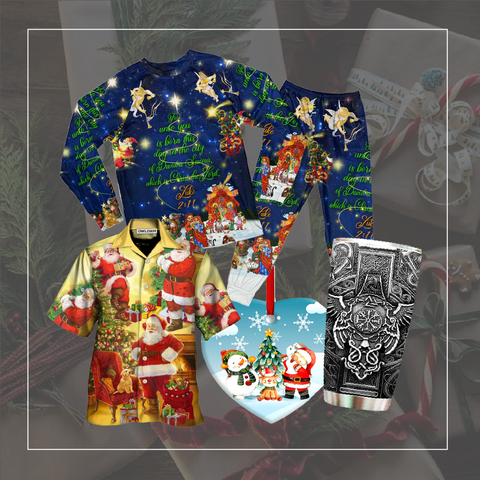 Box 5: Hawaiian Shirt, Pajamas + Pants, Tumbler, Ornament
